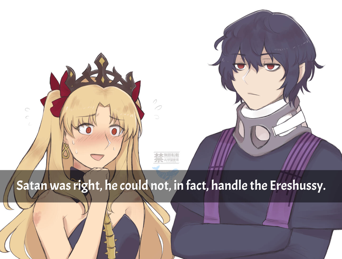 | YES. OC's & Reference sheets, Soft NSFW / Erotic and sensual themes, Ship art, Blood & scars, Comic strips, Album & book covers, Discord emotes. | NO. Complicated armor / mechas, Anything that promotes hate against minorities, Heavy gore, real life people. |